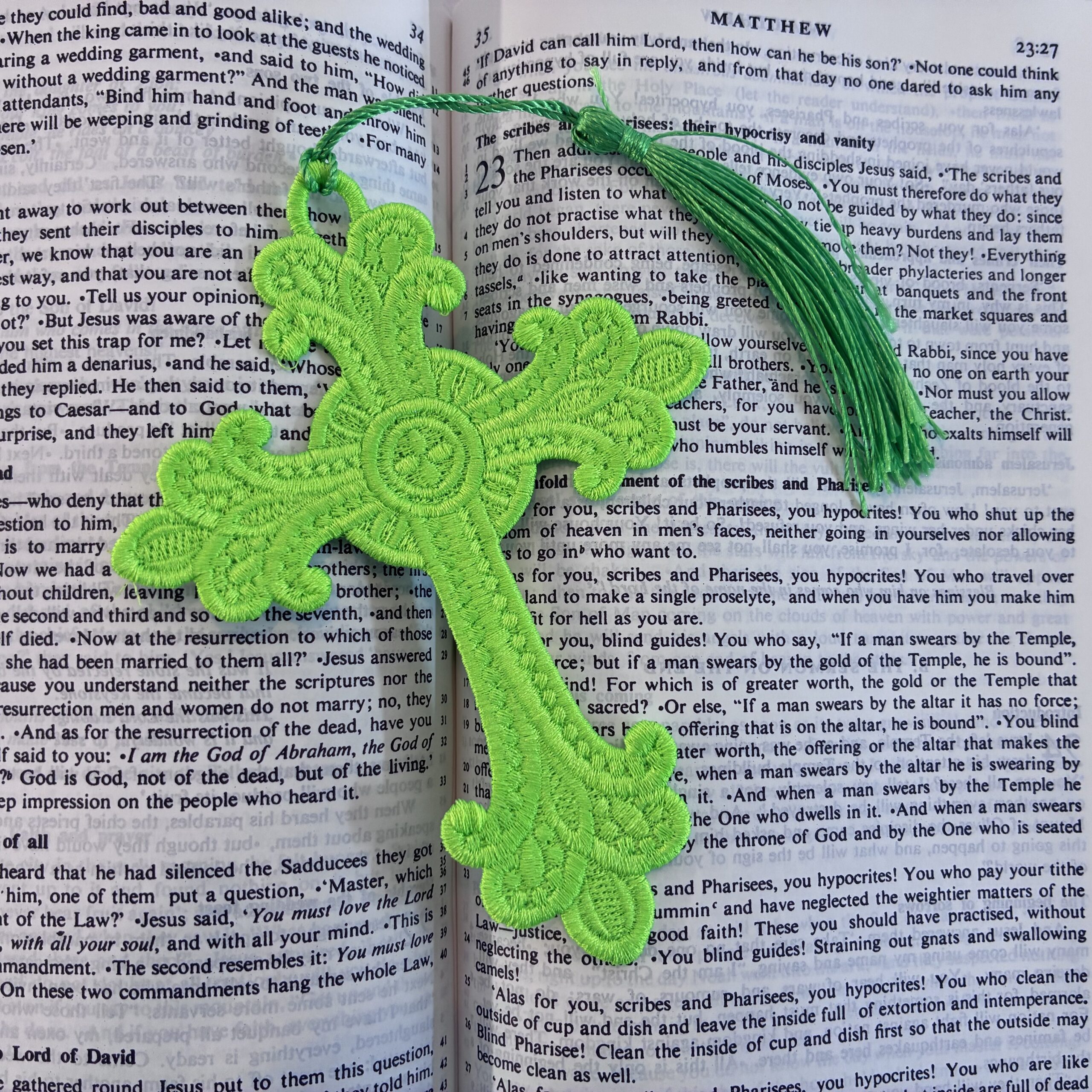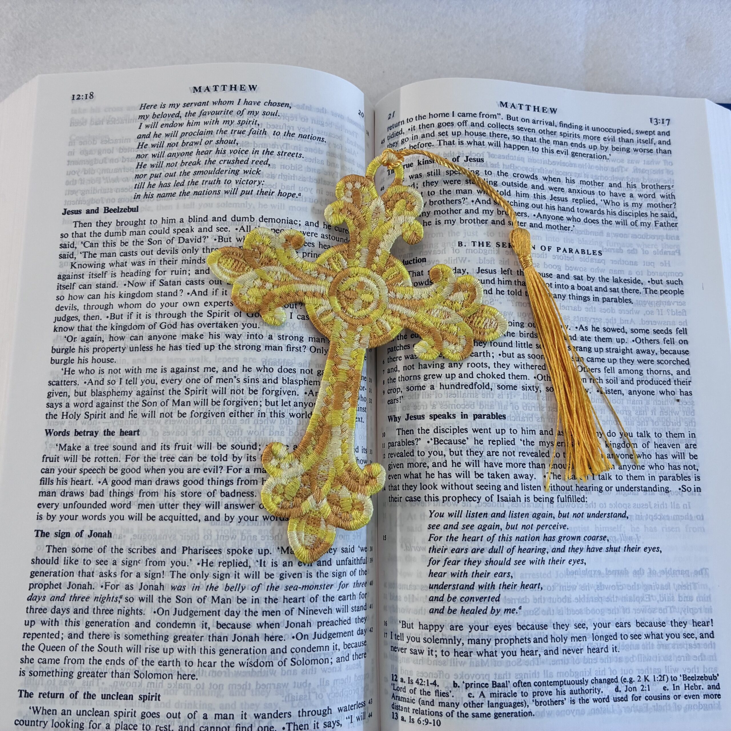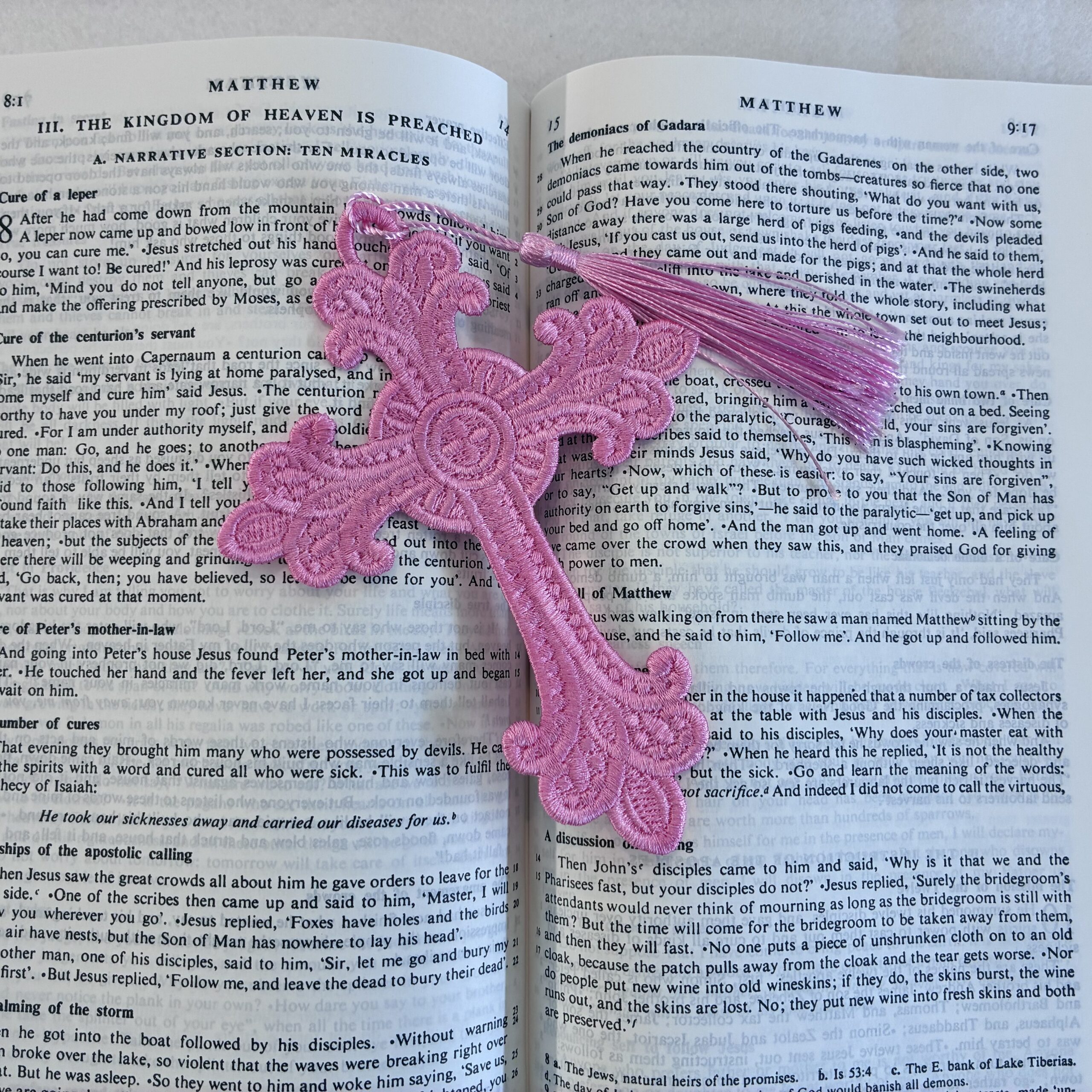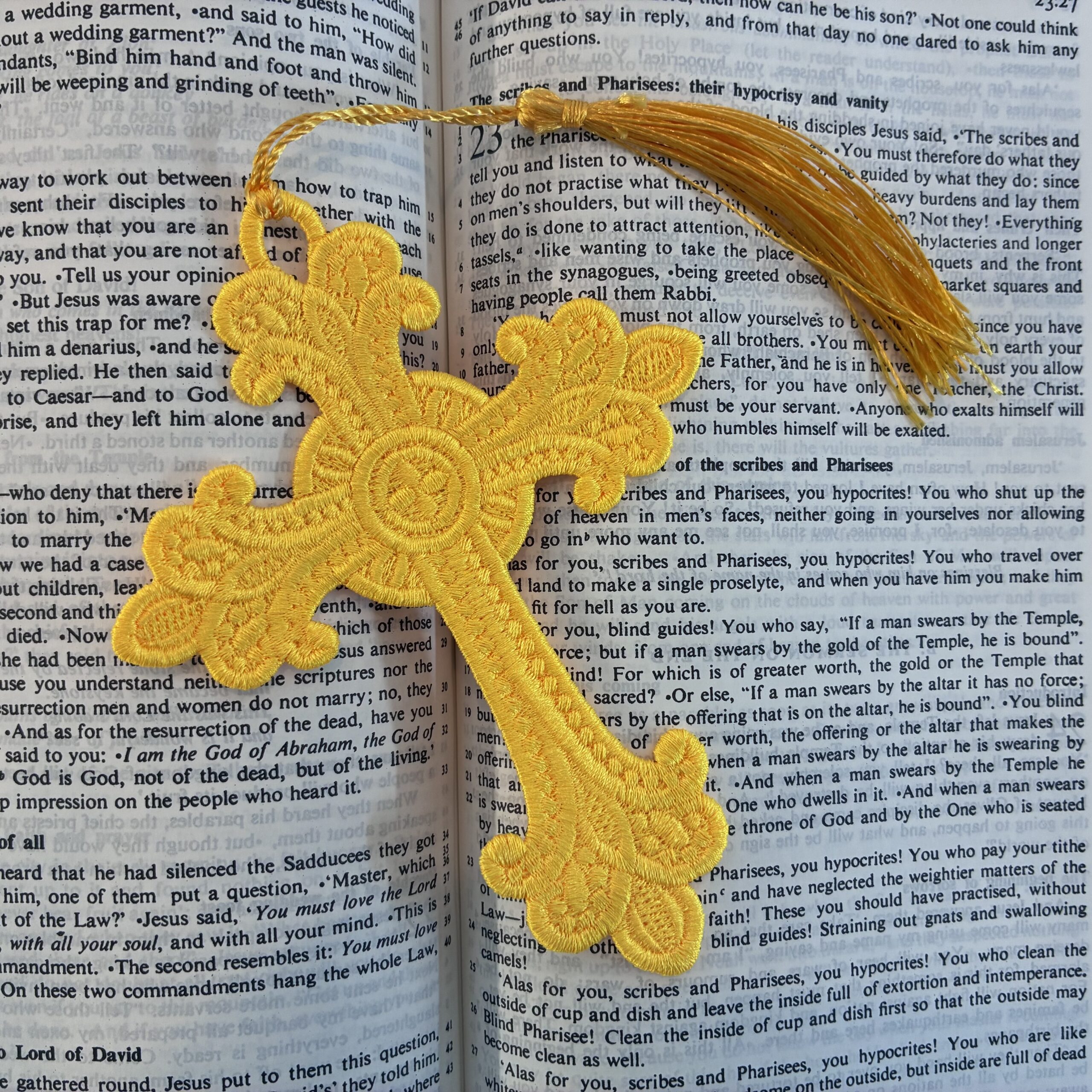 A range of embroidered, lace bookmarks, available in a variety of colours and sizes. These are produced in the UK, with over one hour of production going into each. They are not embroidered on cloth, but the entirety of the bookmark is made from stitches. An ideal companion for Bibles, Missals and Prayer Books, or for a beautiful gift!